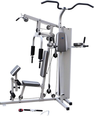 - Two Station Home Gym 145LBS Dead Weight Stacks filled concrete vinyl plates. You will be able to enjoy a fresh and interesting workout when they use it. Keep fit everyday Product Features: Dural Powder Coating Finish;Pivot point on leg developer correctly align with knee joint for biomechanics 2000lbs tensile strength aircraft cable 50x50MM heavy duty contrucion tube Contoured ,deep padded seat and backrest With Lat Pull Bar And Ankle Strap Speed ball and Heavy bag With Lat Pull Bar And Ankle Strap Speed ball and Heavy bag Max user body weight:135Kgs Assembly Size: 170(D)X135(W)X220(H) Function:Tricep Extension Abdominal Crunch Leg Extension High Pull AB Crunch Tricep Push-Down Lat Pull Down;Bicep Curl、Pectoral Fly Seated Prss Bar Row Preacher Curl Bench Press, Leg Kick Back Seated Shoulder Press Power Tower ;Upright Row Standing Leg Curl Standing Shoulder Dip Arm Knees Raise Two Station Home Gym 145LBS Dead Weight Stacks filled concrete vinyl plates. You will be able to enjoy a fresh and interesting workout when they use it. Keep fit everyday Product Features: Dural Powder Coating Finish;Pivot point on leg developer correctly align with knee joint for biomechanics 2000lbs tensile strength aircraft cable 50x50MM heavy duty contrucion tube Contoured ,deep padded seat and backrest With Lat Pull Bar And Ankle Strap Speed ball and Heavy bag With Lat Pull Bar And Ankle Strap Speed ball and Heavy bag Max user body weight:135Kgs Assembly Size: 170(D)X135(W)X220(H) Function:Tricep Extension Abdominal Crunch Leg Extension High Pull AB Crunch Tricep Push-Down Lat Pull Down;Bicep Curl、Pectoral Fly Seated Prss Bar Row Preacher Curl Bench Press, Leg Kick Back Seated Shoulder Press Power Tower ;Upright Row Standing Leg Curl Standing Shoulder Dip Arm Knees Raise