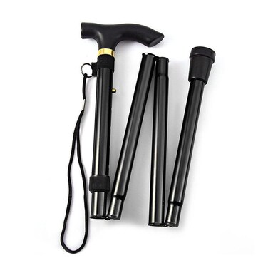Tomshoo-Adjustable Aluminum Metal Walking Stick Folding Collapsible Travel Cane Black