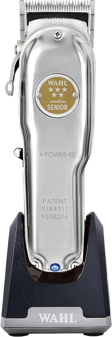 Wahl's Professional 5 Star Cordless Senior Clipper Metal Edition was engineered for close cutting and on-scalp fading. Wahl's most powerful rotary motor smoothly and easily cuts through dense, textured, and coarse hair, wet or dry. It has a cut-length range of 0.5mm- to 1.2mm and can be zero-gapped. The cordless hair clipper is designed for barbers and stylists to create seamless blends while hard or soft line fading with a metal taper lever. It’s the ideal clipper for bulk hair removal. These features are housed in a high-impact, durable metal case. The American-made Cordless Senior Clipper is a must-have for professional barbers and stylists. Package includes charge stand, 3 patented premium metal clip attachment comb cutting guides (1/16", 1/8", 3/16"), styling comb, cleaning brush, clipper blade oil, red blade guard and operating instructions. The Cordless Senior Clipper measures 6.25 inches and weighs 13 oz. It features a rotary motor and a lithium ion battery with Smart LED with a 80 minute run time. The Clipper comes equipped with a (#2191) adjustable 0000 blade. Made in U.S.A. The charge stand is weighted to keep it steady and in place and avoid any toppling of your device. Includes a rotating cord port to adapt to your station for optimized space managment. PLEASE NOTE: Due to continuous improvement, the product appearance may slightly vary from the product images on this listing.