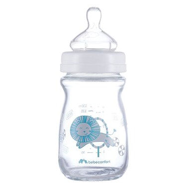 The Bebecomfort Emotion Glass Bottle is a high-quality feeding bottle designed for babies.