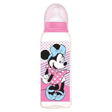 It is designed with a clear body and features adorable Minnie Mouse graphics, making mealtime even more fun. This bottle has a capacity of 266ml, making it ideal for both milk and water.