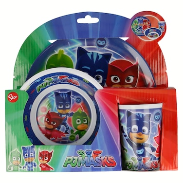 - This PJ Masks Boxed 3 Piece Mealtime Set is great for encouraging little one's to sit for mealtimes!