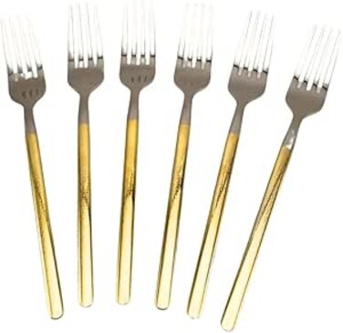 QUALITY - Gold V Design Dessert Fork are constructed by high quality stainless steel to ensure rust resistant and high hardness, Healthy and durable for everyday use, Dishwasher Safe