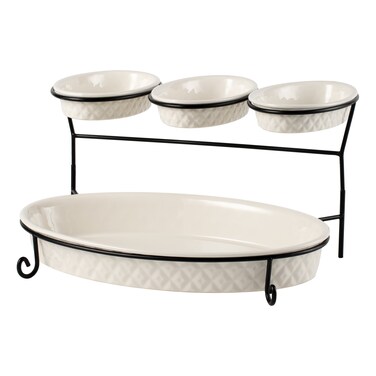 This 2 Tier Oval Shaped Serving Set with Black Stand is perfect for hosting parties or events. The two levels provide ample space for displaying a variety of appetizers, desserts, or snacks. The sleek black stand adds a modern touch to any table setting.