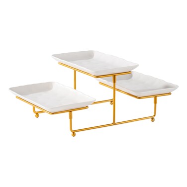 2 Tiers Rectangular Shaped Serving Set with Gold Stand 25cm 3 PCS