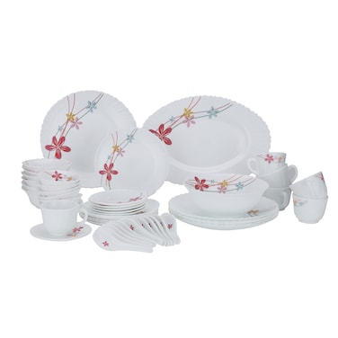 Royalford 50 Pcs Opalware Dinner Set with beautiful assorted design, our dinnerware set makes a painterly impression on the table. Beautiful flower bowls and plates make the place settings a well-rounded choice for every meal of the day. This set is perfect for place settings for 6, with the pieces you'll need for everyday use. The unique strong opal glass offers a space-saving design that is lightweight yet extremely durable.This dinner set plates and bowls, highly resistant to chips and cracks. These dishes stand up to accidental bumps and tumbles, keeping them chip-free, and looking brand-new for years to come! This dinner set can take the heat! Easy to clean dinner set. Our unique, design is the secret to making dishes that are practically unbreakable making the dinner set a perfect choice for family meals and casual gatherings. Reliably strong and durable, it is a great alternative to plastic plates for outdoor use, whether it is a picnic in your garden or a camping trip. Big on style, not on space, our dish sets are made for stacking. Plates and bowls stack compactly, taking up half the space and perfect to keep your kitchen neat and organized. Suitable for family daily use, college students' dormitory, parties.