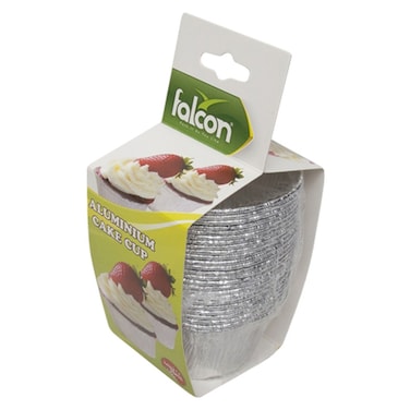 Falcon Round Aluminium Cake Cup With Holder Silver Pack of 25