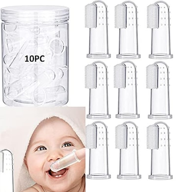 10PC Silicone Baby Finger Toothbrush Soft Gum Massage and Teether Brush for Teething Relief, Oral Cleaning Care Gum and Tooth Cleaner 3 Months Plus Clear