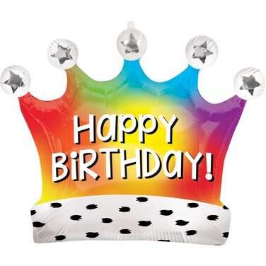 Anagram Birthday Rainbow Crown Supershape Foil Balloon- 27-Inch Size