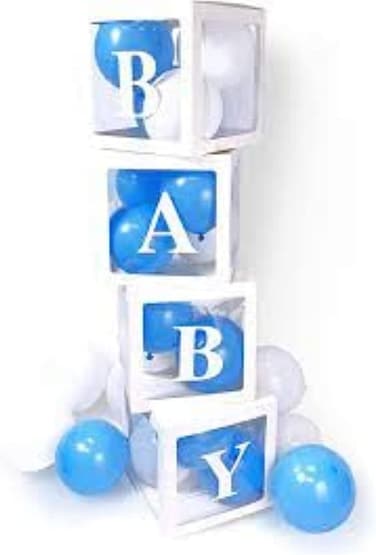 Why Need the Balloon Decorations Boxes? - Don't you want to host an unforgettable birthday party for your baby, decorate your party with this balloon box, make it more beautiful, impress your guests, and most importantly let your baby favors love the party. Unique Package Design - 4 pcs 11.8inch x 11.8inch x 11.8-inch white boxes. The baby block square balloon decorations boxes with party decorations consists of white frame and transparent board with "B" "A" "B" "Y" letters. Match blue, white balloons and more, even you can put other decorations into boxes to create a unique party by yourself. Easy to Assemble - Baby boxes are pre-folded in one pack, easy to set up as our picture instruction shows, then paste BABY on the box with glue included. After putting some white or pink balloons into baby boxes, we believe that your party will impress your guest and family. Health Materials And Recyclable - the decorations box made of harmless pulp, harmless to pregnant women and children. when the party is over, you can recycle it for the next birthday party or baby room decorations, photo studio, prop backdrop décor.