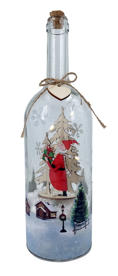 Christmas Glass Bottle Decoration w/ LED 8.7x31cm