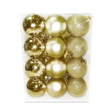 Christmas Magic Shiny Matt Glitter Christmas Balls 24-Pieces- 5 cm Diameter- Gold