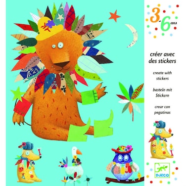 - Create colourful animal pictures (choose from a dog, goose, owl or bear) using the 24 sheets of printed background paper and decorate with the 6 sheets of stickers provided.