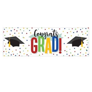 Let everyone know how proud you are when you decorate the party with the Colorful Graduation Banner. These paper banners measure 96In x 6In and feature a graduation cap and the words InCongrats GradIn with a red, blue, green, and yellow theme.
