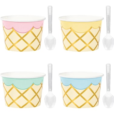 - Creative Converting Ice Cream Party Decor Treat Foil Cups with Clear Plastic Mini Spoon 8-Pieces
