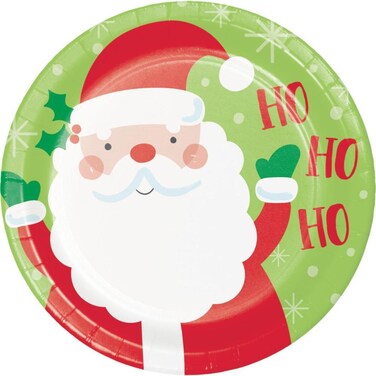 Serve yummy Christmas treats atop our Ho Ho Ho Santa Paper Plates. These sturdy plates measure 9 Inches in diameter. They feature a jolly cartoon Santa Clause against a green and snowflake background with Ho Ho Ho text. Our Ho Ho Ho Santa Paper Plates are sold 96 plates per package. Check out our other Christmas party supplies to complete the look at your party. Our Ho Ho Ho Santa Dinner Plates 8 Pieces are Perfect for event planners, caterers, and home hostesses alike. Our Welcome Winter Dinner Plate, 8 Pieces will make a great addition to your party!