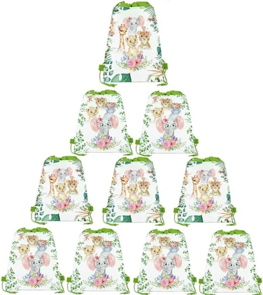 Package Includes: 10pcs Drawstring bags High quality oxford fabric with waterproof coating, soft and comfortable, strong and durable. Exquisite animal pattern, highlighting the fashion taste. Drawstring design, easy to use. Large capacity, zippered pocket inside, can hold Ipad, cosmetics, clothing and other items. Suitable for outdoor camping, hiking, party, leisure walking, picnic, beach, travel, etc.