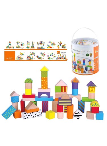 Generic 50-Piece Wooden Block Set With Storage Tub