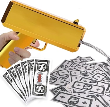 Gold Money Gun Shooter with 100pcs prop money Cash Gun Shoot make it rain money Gun fake gun play toys for Party