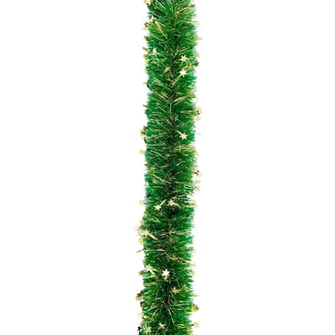 Green Garland w/Gold Tinsel Stars 300cmx12cm