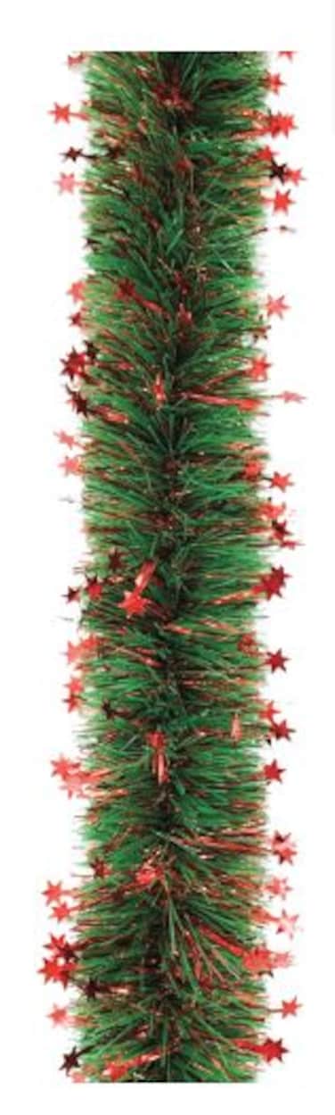 Green Garland w/Red Tinsel Stars 300cmx12cm