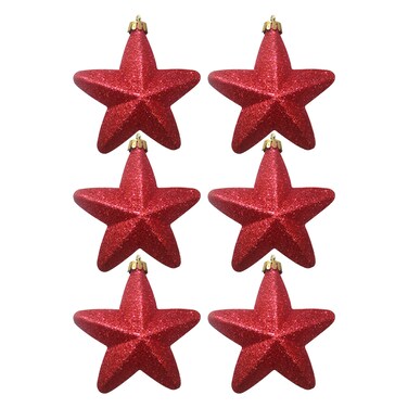 Hanging Star Glitter Red 10cm 6Pcs/PVC Box