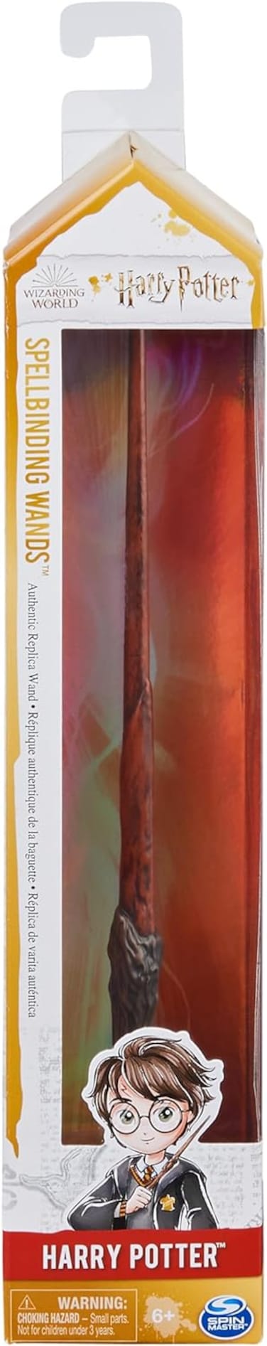Practice spells from the Wizarding World of Harry Potter with the Spellbinding Wands! Featuring authentic details and a weighted base, this 12-inch replica Harry Potter wand is a must-have for Harry Potter fans and collectors. With the wand’s collectible spell card, you can learn the Aguamenti spell! Follow the diagram on the card to practice the wand movements and pretend to cast your spell. Recreate your favorite scenes from Harry Potter and pretend to conjure water from the tip of your wand! Each Spellbinding Wand has a unique card to help you master iconic spells and charms like Wingardium Leviosa, Incendio and more! The Spellbinding Wands are the perfect way to inspire your imagination through fun and exciting pretend play. Collect Harry Potter, Hermione Granger, Ron Weasley, Luna Lovegood and Albus Dumbledore’s Spellbinding Wands (each sold separately) and add to your Wizarding World play! These enchanting Harry Potter collectibles are the perfect gifts for kids aged 6 and up. Bring home your very own Harry Potter replica wand with the Wizarding World Spellbinding Wand!