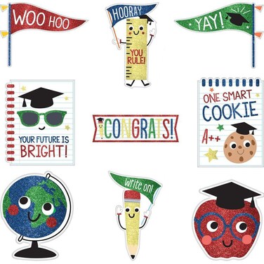 Make sure that your parties are the best ever by adding this fun party cutout! This pack includes 9 graduation themed cutouts including an apple, a globe, a pencil, and flags, among others, with sizes measuring from 12 Inches, 8. 5 Inches, and 6. 5 Inches. It's a quick, easy, and convenient way to dress up your parties and other celebrations! This pack is a great value that shouldn't be missed!
