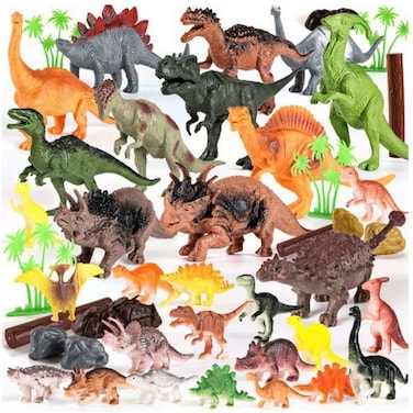 - JMD 46Pcs Dinosaur Toy Set, Dinosaur Figures Model Toys Gift Playset with Tree, Eggs, Stones and Mountains