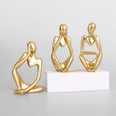 LINGWEI Abstract Thinker Statue and Sculptures Desk Statue Desktop Thinker Statue Home Decor Thinker Statue Statues Desktop Decorative Figurines Gold 3-Pieces Set