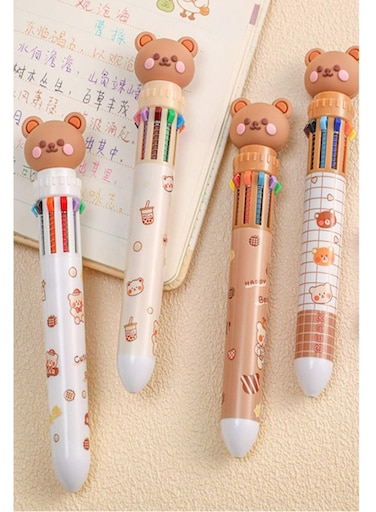 Multicolor Ballpoint Pen 0.5mm, 10-in-1 Colored Retractable Shuttle ball point Pens for Office School Supplies Students Children Kids Cute Stationery Gift (Bear 4pcs)