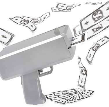 PARTY TOY:Fast speed, rapid money raining machine !Fun party activity prank toy will keep your guests entertained throughout the night. NOTED: 4AA BATTERY NOT INCLUDED.Prop gun made from high quality ABS Safe material.