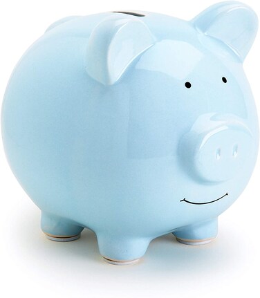 Pearhead Ceramic Piggy Bank, Baby Boy Nursery Décor, Money Keepsake, Blue