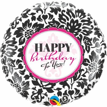 - Qualatex Happy Birthday Elegant Damask Foil Balloon- 18-Inch Size