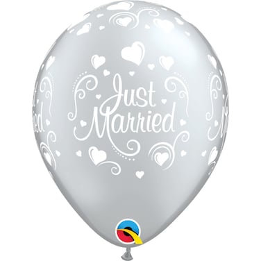 Qualatex Just Married Hearts Latex Balloons- 6-Pieces- 11-Inch Size- Silver