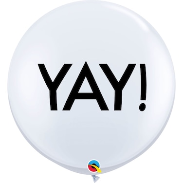 2 huge (92 cm) white balloons with the word YAY! Qualatex balloons are made of 100% natural, flexible latex. The best world quality; used by professionals. They float longer than ordinary balloons - both filled with air and helium.
