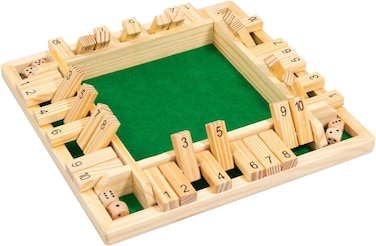 - Classic Shut The Box Game: This two-player( or more players) version of the classic game Shut the Box is constructed from high-quality wood, with a felt playing surface. Includes wooden dice and 1x easy-to-understand instructions. Measuring Size: 12X12X2 inches.