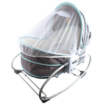 Teknum 5-in-1(Rocking Bassinet/Rocking Chair/Baby Basket/Crib to Accompany in Bed/Cozy Reclining Chair) Rocker Bassinet By SamBox is a 5in1 solution from Playing to Napping & Feeding to Travelling. Unique design that easily converts Rocking Bassinet to Rocking Chair/Cozy Napper or Crib to Accompany in Bed/Baby Basket with just one click with complete safety assurance in each mode with suitable belt to hold you baby.3 level backrest adjustment can fully meet the baby's life and growth needs with 3 Reclining Positions that are perfect for playing, exploring, napping, feeding and Easy detachable sleeping basket can be removed and used alone, The Soothing Vibration Effect and Music Box has multiple music to soothe the baby's mood. Easy to Store and a Great gift for baby shower to get back mother's delicate sleep, giving the baby a comfortable space to sleep naturally.