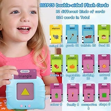 Talking Flash cards, Learing & Fun Toys for Toddlers Kids Fun & durable flashcards with intelligent talking sight words machine make a perfect match. Upgrading the concept of using traditional flash cards because this not only helps the toddlers learn by themselves but they also keep them engaged with automated recognition software that reads the sounds allowed making it easily recognizable for the kids and remember. The corresponding sound effects can also enhance toddler's identification, cognition and imagination.