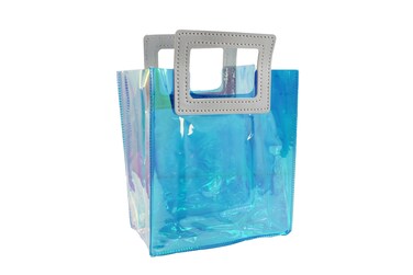Transparent Clear Nylon Gift Bag High Quality PVC Handled Gift and Shopping Bag (Blue, 16x18x9 cm) - Pack of 12