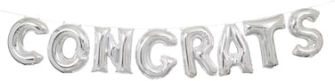Unique Congrats Foil Balloon Banner Kit- 14-Inch Size- Silver