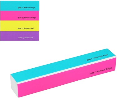 The fine grit side allows for smoothing and buffing the nail
