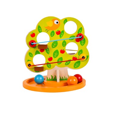 The Magic Tree has several levels with a quick trail along its sides. The wooden ball is placed on the top and makes its way down through different trails, until it reaches the base of the tree.