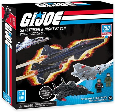 150 Piece Set - GI Joe Skystriker and Night Raven Construction Toy Playset includes 2 military style fighter jets with unique Cobra Pilot mini figures. Fun brick building play fosters creativity and encourages both independent play and group play. Includes a full-color instruction manual with easy to follow building steps. Compatible with other popular brand brick building sets, allowing you to swap, rearrange and build your own unique creations! Makes a perfect birthday or special occasion creative gift for fans of GI Joe and kids age 5 and up. A must have for every GI Joe Collector!