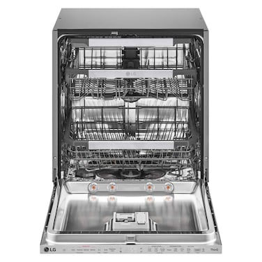 The LG QuadWash Built-in Dishwasher DBC425TS in Dark Grey is a sleek and modern addition to any kitchen. With its four spray arms that rotate back and forth, this dishwasher ensures a thorough clean every time. Plus, the adjustable racks and customizable settings make it easy to fit all your dishes and cookware.
