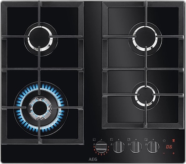 AEG Gas Hob Built-In, 60cm 4 Burner, Glass Finish, HKB64450NB, Made In Italy (1 Year Warranty)