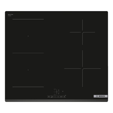 The Bosch Series 4 Built-in Induction Hob PWP63KBB6E in black is a sleek and stylish addition to any kitchen. With a width of 60cm, it fits seamlessly into most kitchen designs, offering a modern touch to your cooking space.