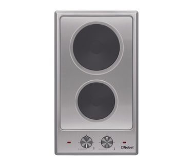 Nobel 30 cm Electric Built-in Hobs, Stainless Steel Top Plate, Inox Knob Control, 2 Knobs, 2500W Max Power, Front & Rear Controls, Made in Turkey, Premium Kitchen Appliance NBI3021HH Silver