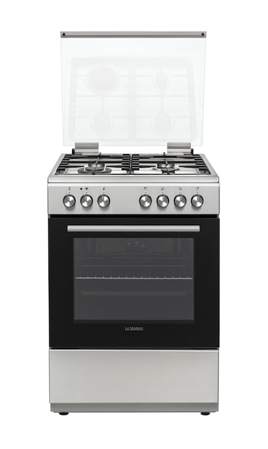La Modano 60 cm Stainless Steel Gas and Electric Cooking Range with 4 Gas Burners, Double Glass Oven Door with Cooling Fan, Wok Burner, Cast Iron Supports, and 65L Large Cavity Volume- LMC601GG