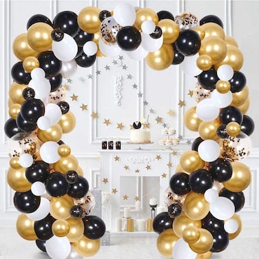 Balloon Arch & Garland Kit, 120Pcs White, Black, Gold Confetti and Metal Latex Balloons with Balloon Strip Tape, Glue Points and 1pcs Tying Tool for Graduation Wedding Birthday